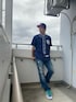今日は風呂の日らしい🛁 野球は出来ませんが、ブルー系ベースボールシャツコーデ⚾️