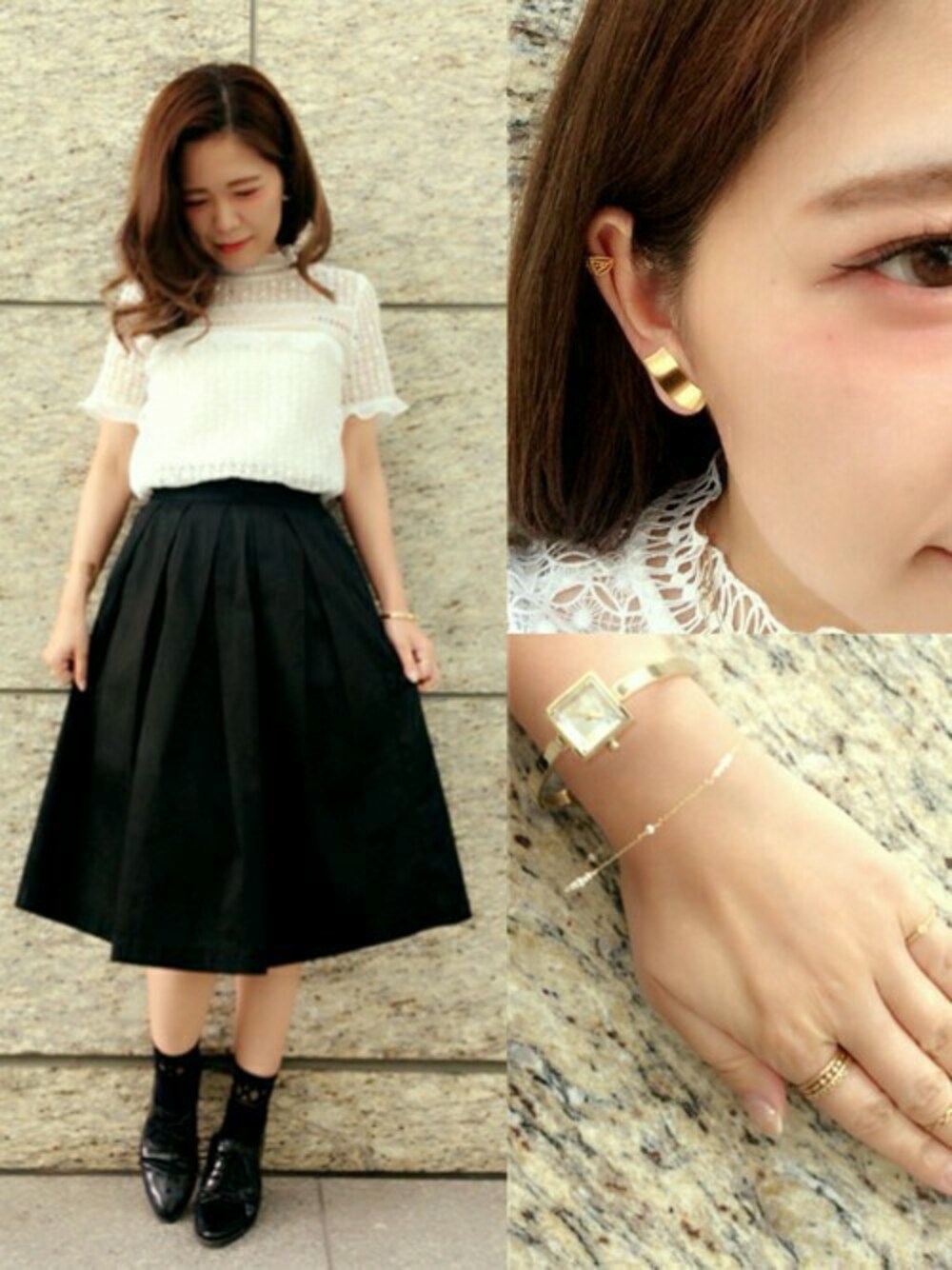 こんにちは(*^◯^*)☆ レースが大好きなENです♡ 一目惚れしたら即買っちゃうほどの レース好きなんです(*/∀\*) 今回はレーストップスに合う 女性らしいジュエリーをセレクトしました! リングは華奢なデザインを重ねづけし、 腕周りは新作のバングル風腕時計に パールのプレスレットを合わせて♪ 耳も新作のイヤークリップで ボリュームを出しました!!! ちなみに下まつげはオレンジのマスカラ 塗ってみました(o´罒`o)♡ 新作もとっても可愛いので ぜひ見に来て下さいませ(*´ㅂ`*)