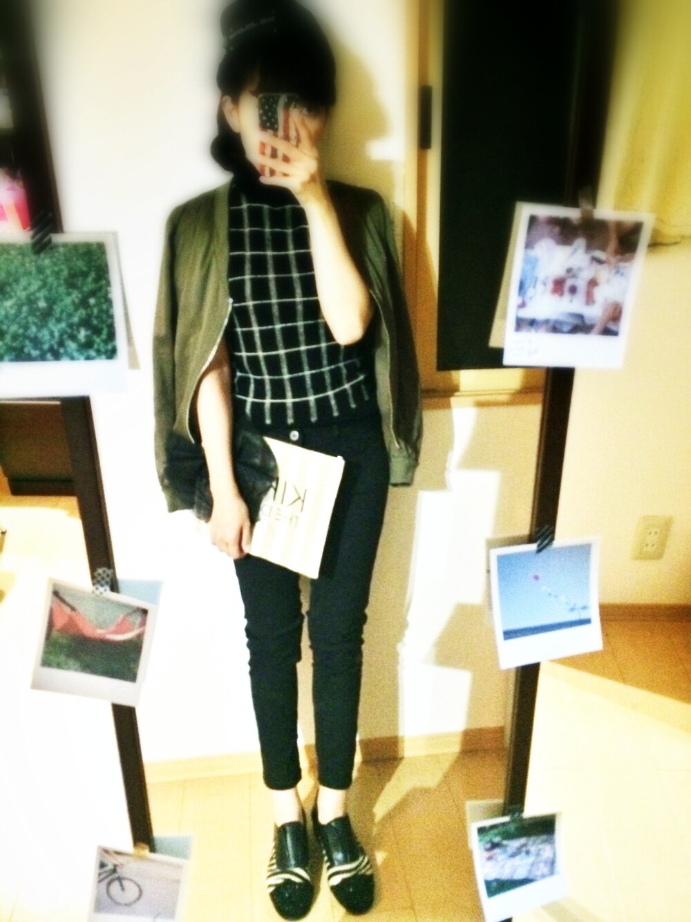 ブラック大好き♡ KIKKAのノベルティバッグをまたもや母にリメイクしてもらいましたー♪ 今日のコーデはフォローさせてもらってる男の子コーデを参考にしてみました