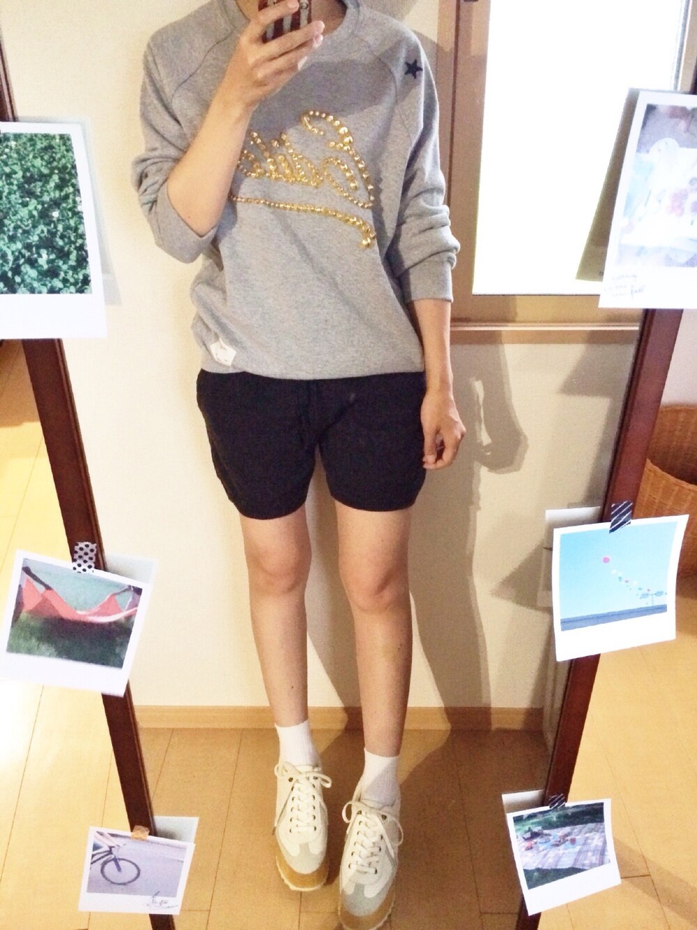 彼氏のスウェットが可愛かったので借りちゃいました♪ 的なやつです。 ( ´° ³°`) メンズのスウェットなんですが、スタッズに惚れて買っちゃいました♡ それも70%OFF‼︎