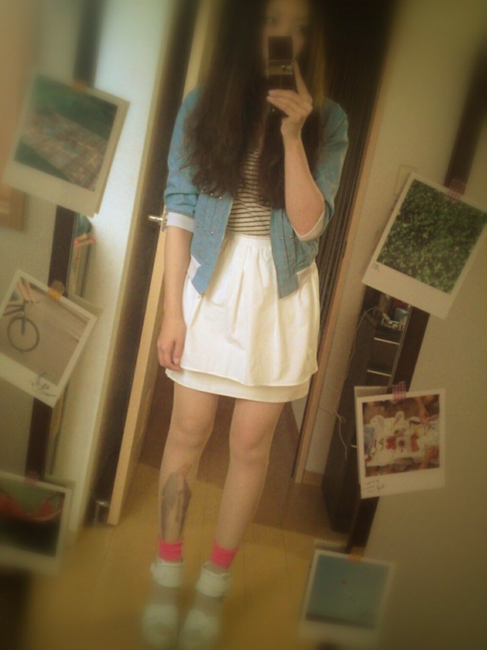 この時期のアウターって困る。 昼は半袖でもいけそうなのに夜は冷える。。。 もうちょっと暖かくなったらいいなー? このストッキング3足目w アクセサリー付けてるとすぐ引っ掛けちゃって泣 でも今回はセールで500円で買えましたのコーデ。