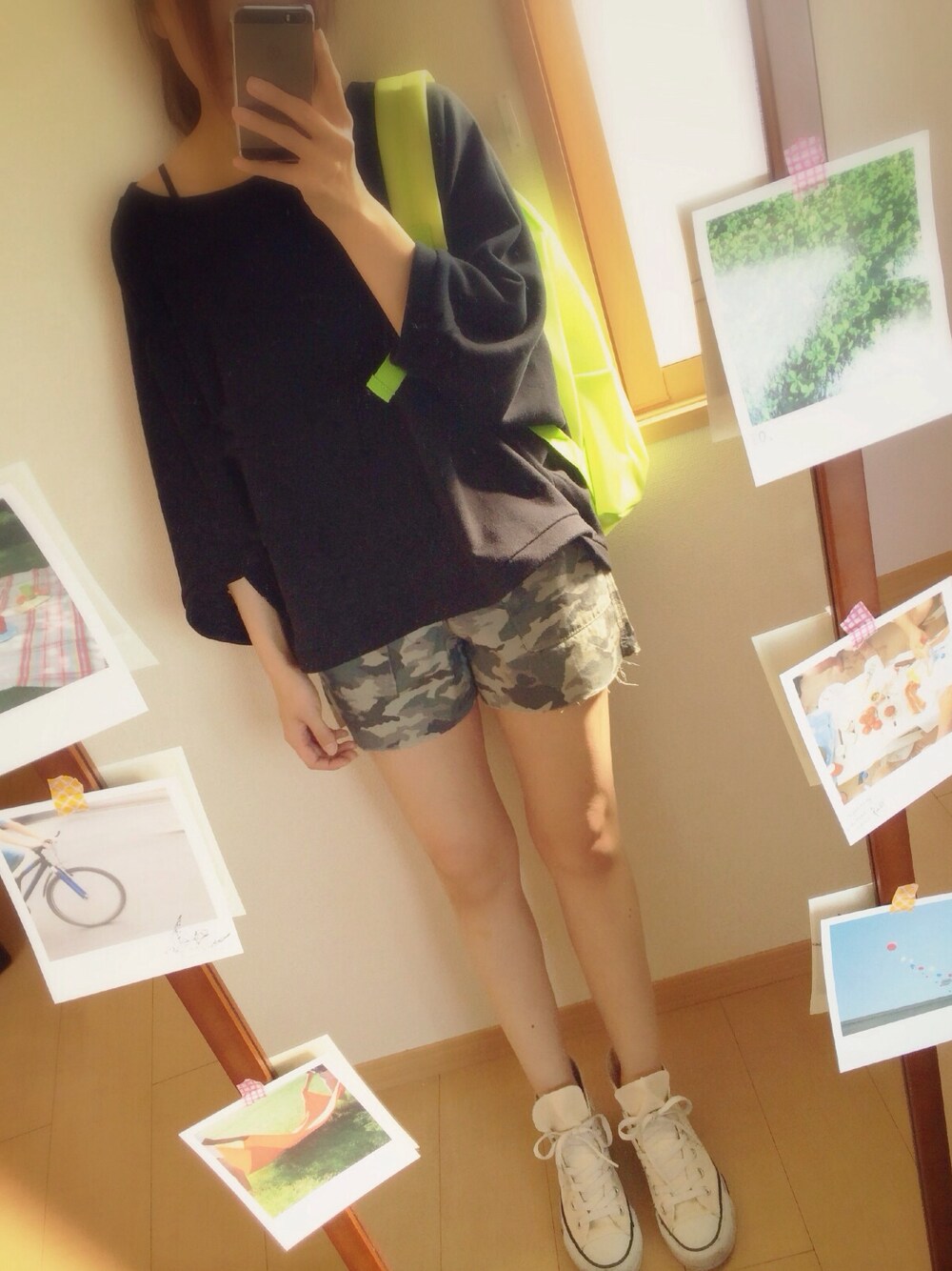 UNIQLOのキッズサイズのハーフパンツを切ってショートパンツに 落ち着いた色みがすきー◎