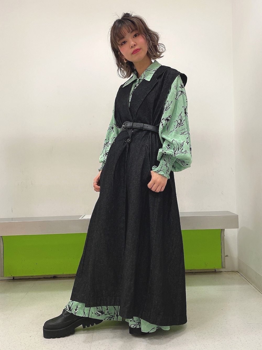 ワンピースコーデ☺︎❤️ 一着で着てもデザイン性がある ワンピースですが、レイヤードして 一緒に着るのも可愛いです✨ ベルトでウエストマークをすると よりスッキリ見えます💕