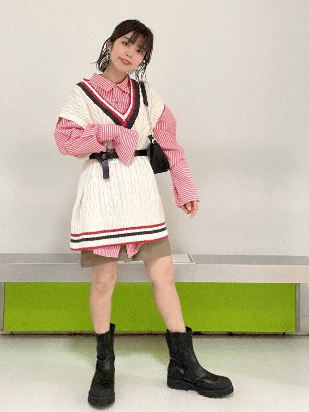綺麗めカジュアルコーデ☺︎ きちっとしたシャツも カジュアルめのベストと レイヤードすれば お洒落感UP間違いなしです❤️ 秋で夏でも 着れちゃうコーデです⭐️
