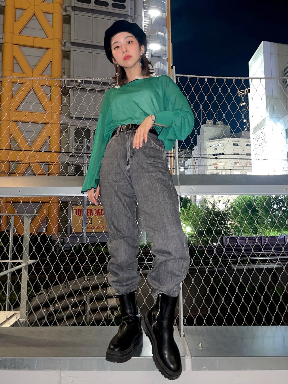 カジュアルコーデ☺︎ グリーンとブラックのコーデは 秋らしい色の組み合わせになって オススメです❤️