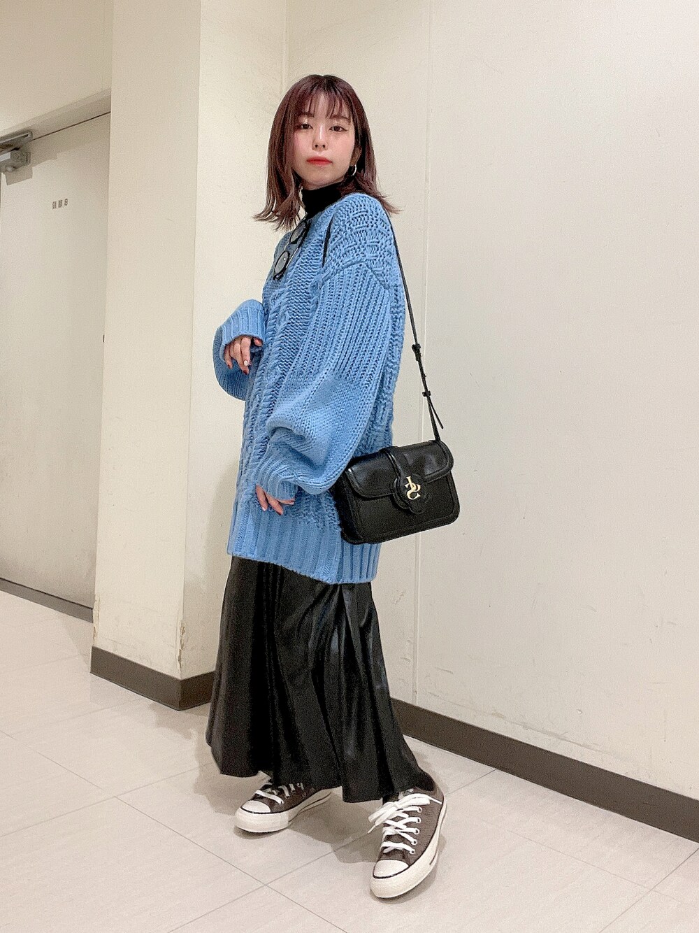カジュアルコーデ❤️ ゆったりとしたニットに 艶感のあるプリーツスカートとの 合わせがオススメです✨