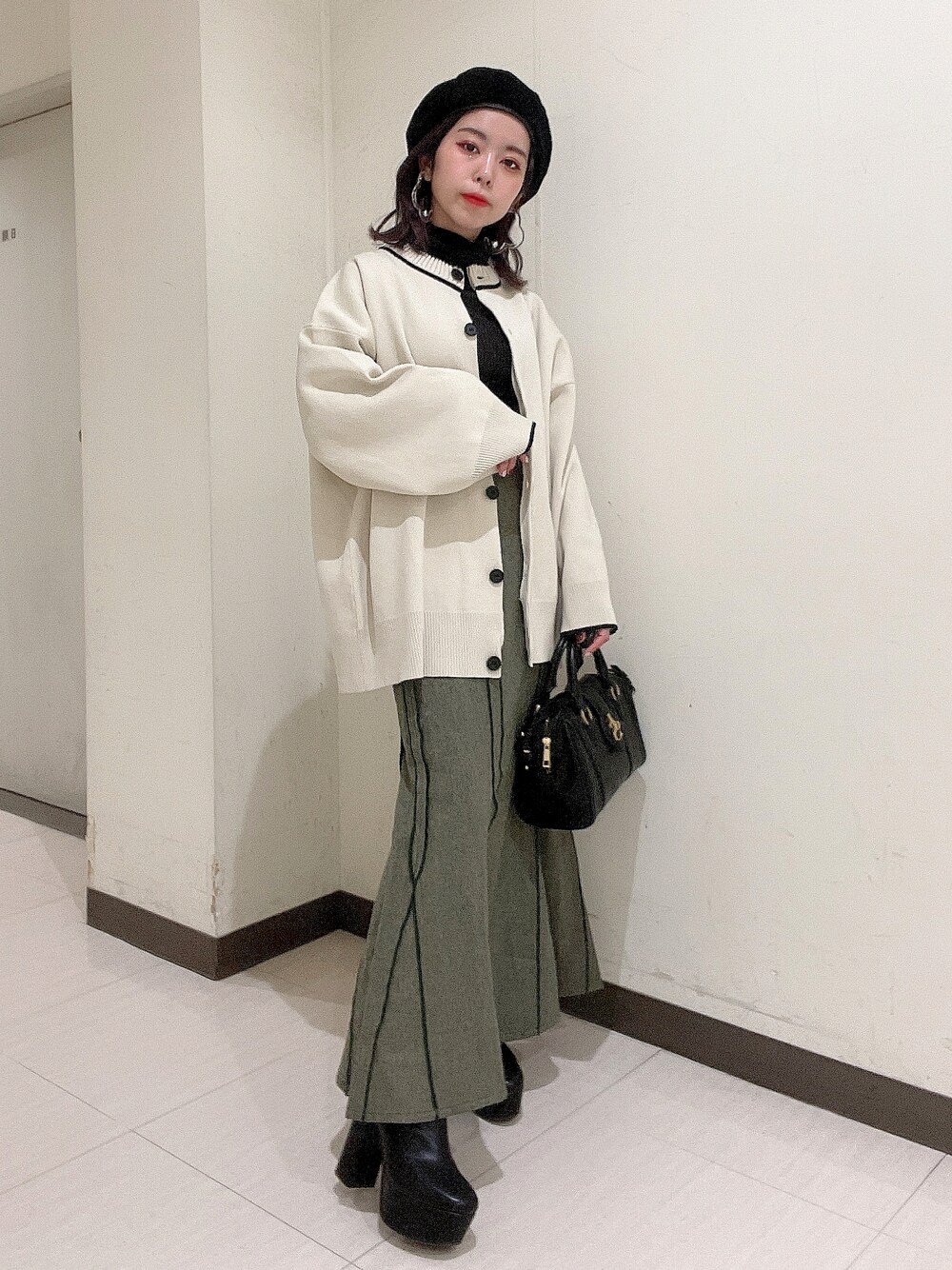綺麗めコーデ☺︎ マーメイドスカートに合わせて ゆったり目のカーディガンとの組み合わせが 可愛いです✨