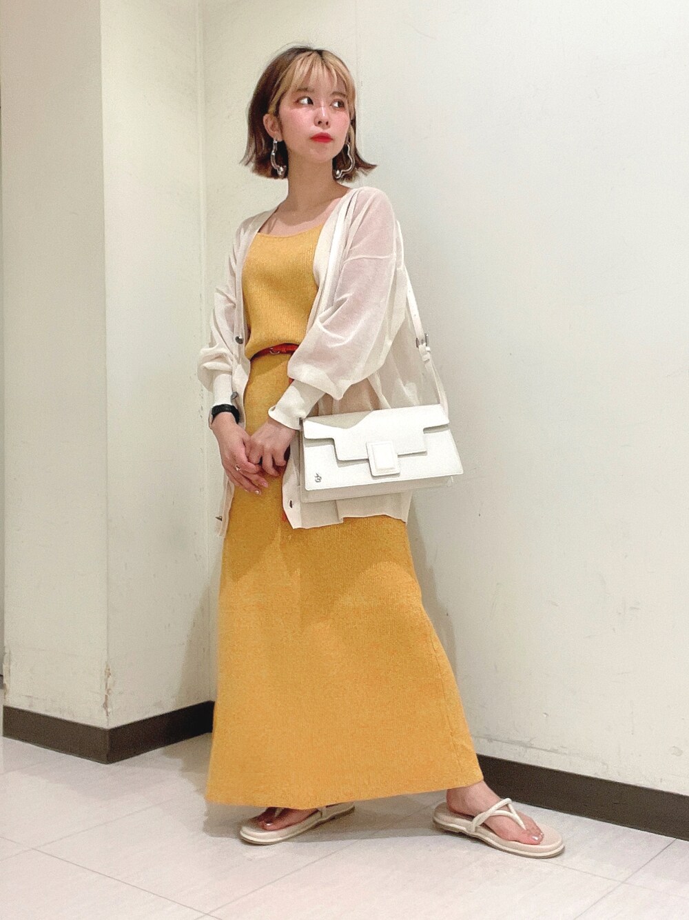 キャミワンピコーデ☺︎ 夏らしいカラー合わせの ワンピースコーデです❤️ 低身長でもベルトと合わせれば 低めのサンダルとも着れちゃいます💕