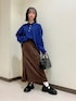 ラフコーデ☺︎ カラー✖︎カラーが可愛い組み合わせです❤️ ニットの柔らかさとスカートの 伸縮性が個人的にお気に入り💕