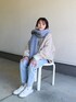 淡色コーデ マフラーぐるぐる 顔のパーツが濃いから淡色どうかな? と思って アアルトのスツールでバランスを取りました。(何のバランスか知らんけど、それらしく言ってみた)