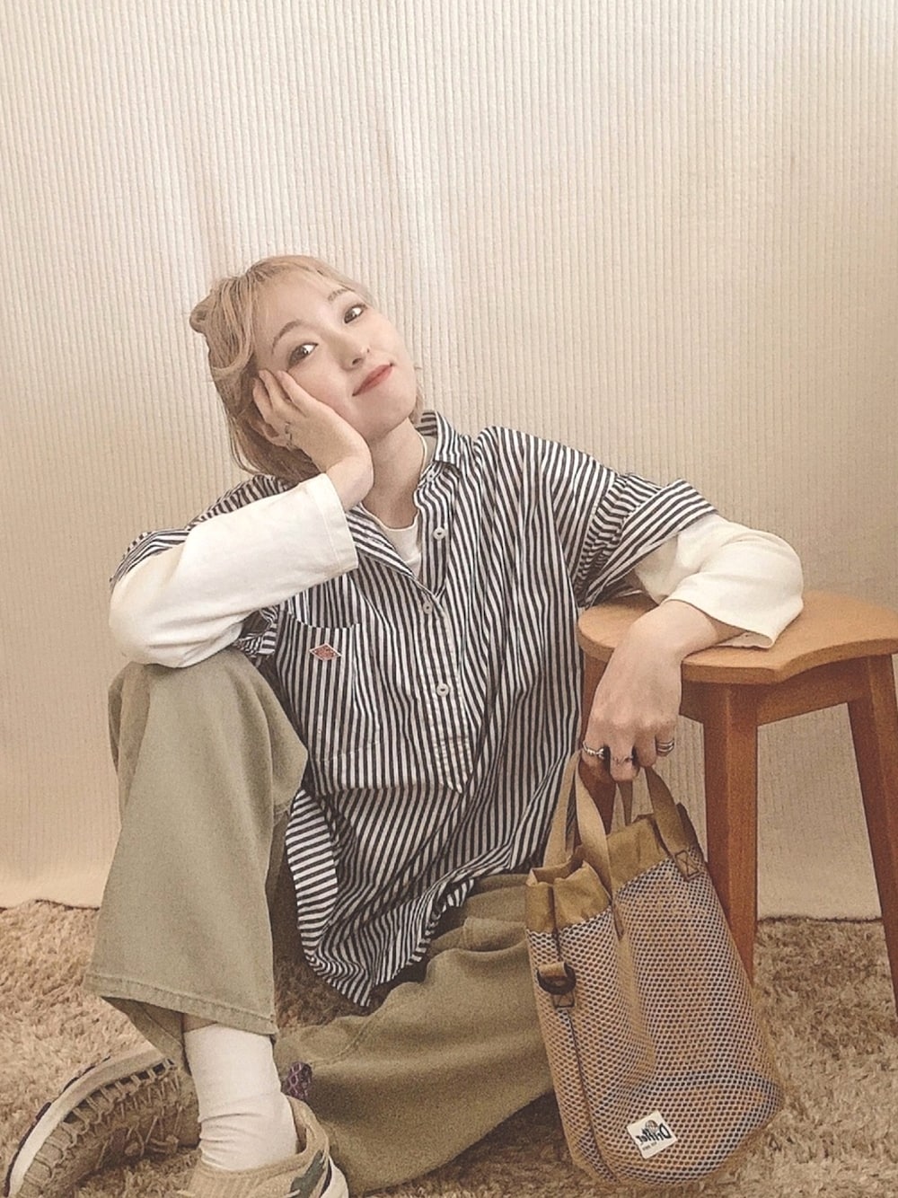《🌀×🥑×🥚》 この時期に欠かせないDantonのストライプシャツ🌀 シャツの袖は長くないので下にcoenのカットソーを着て薄ら寒さ対策を完璧に◎ 全体的にアースカラーでまとめたコーデです〜