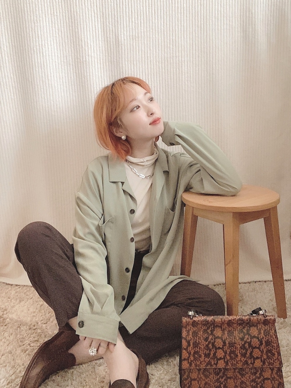 《🐿×🗽》 ペールグリーンと茶色の組み合わせはとっても可愛い◎ まだまだお昼はポカポカで服装に困る時期が続きますね🌀
