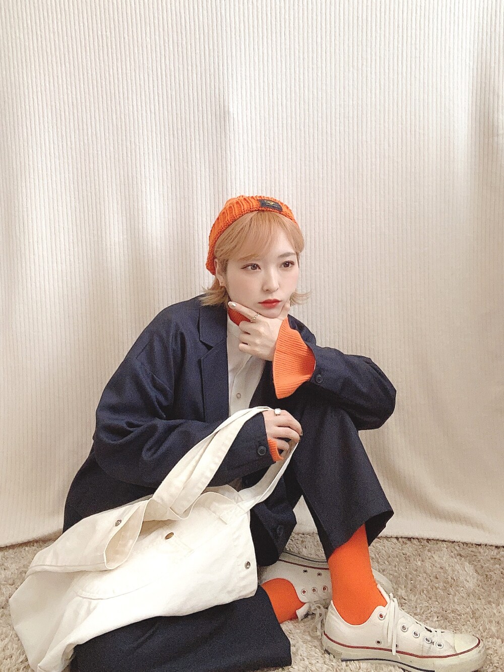《🌌×☁️×🍊》 セットアップコーデ 生地がしっかりしてるのにジャケットとパンツセットで11000円はお買い得すぎてる、、、フリークスストア最強、、、 ノーカラーシャツはインしてません✌🏻