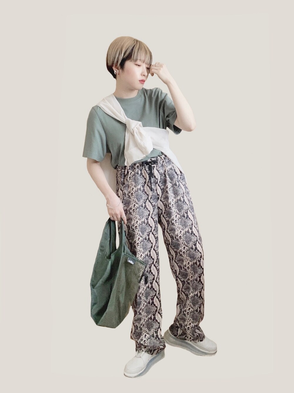 《🍃×🦂×🥛》 楽ちんカジュアルコーデ シアーシャツをたすき掛けさせてます✌🏻