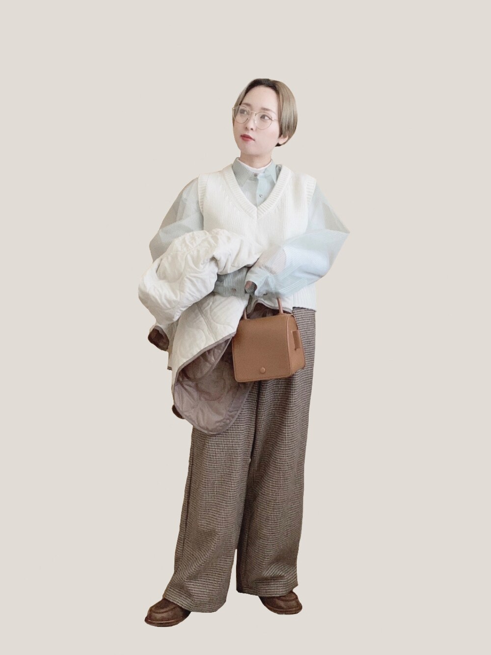 enaのベスト「via j(ヴィアジェイ) Vネックショートニットベスト」を使ったコーディネート