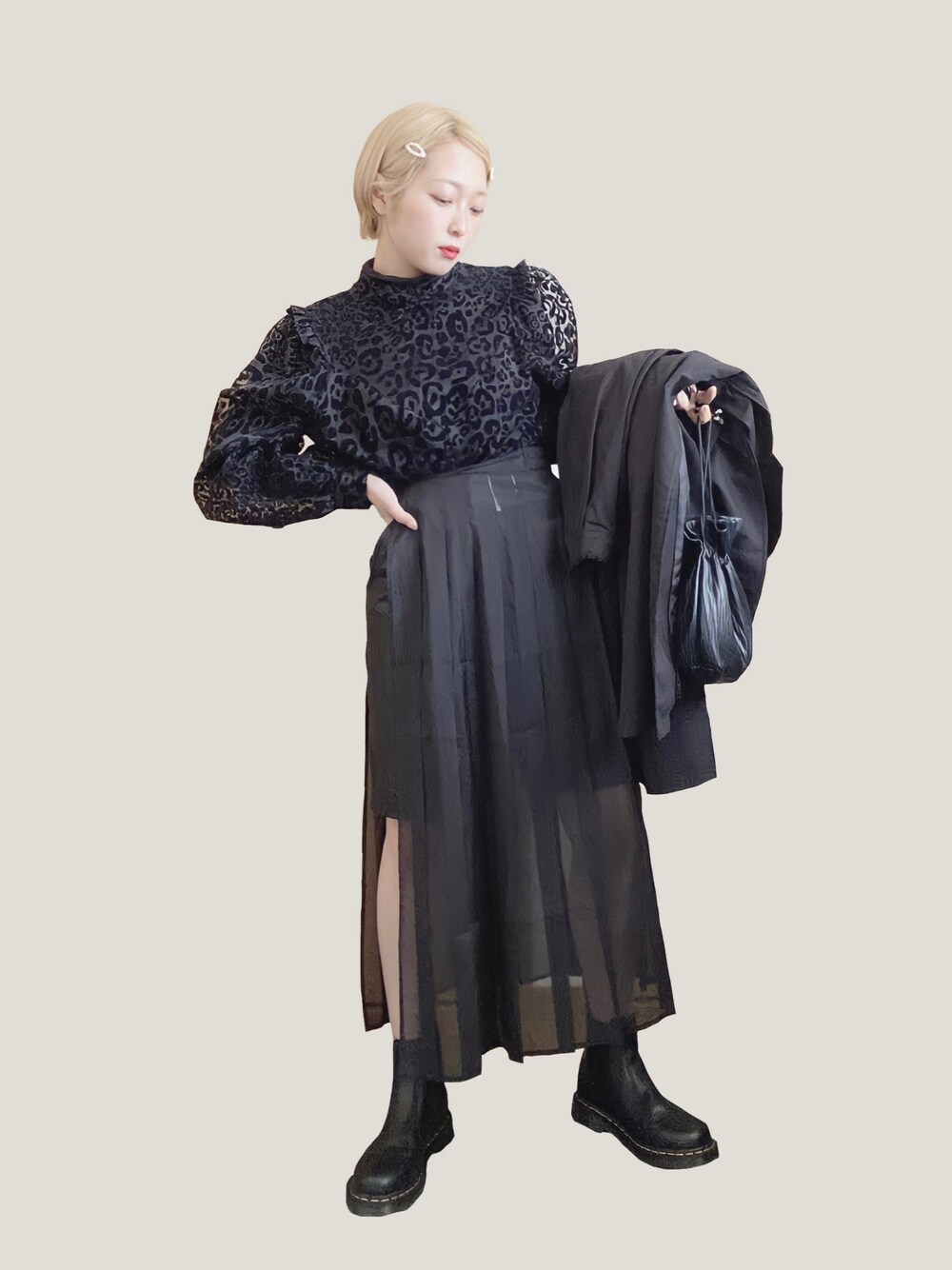 《🖤》 オールブラック🖤 やっぱりZARAのシースルーブラウスかわいい、、、😮💨