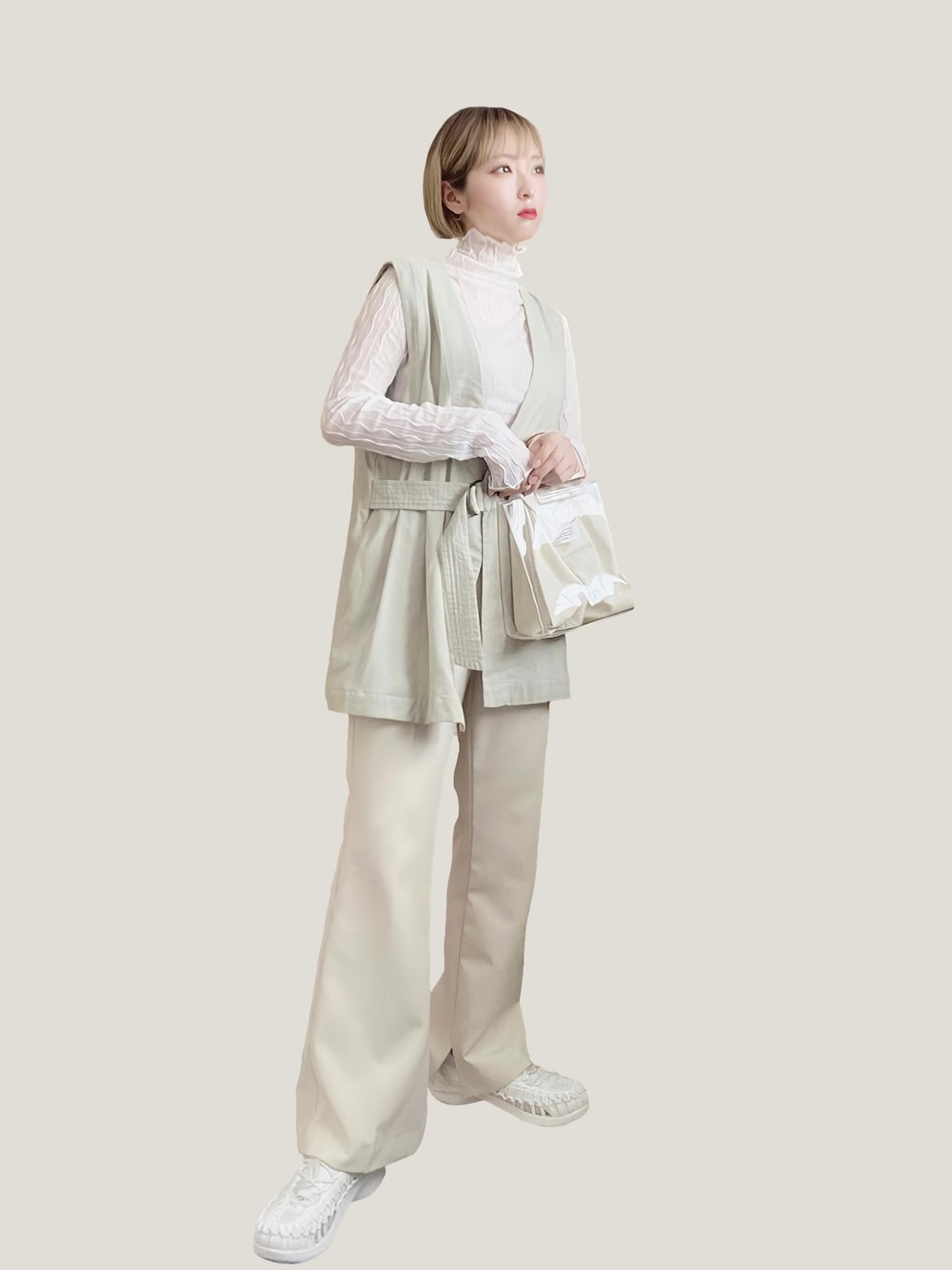 enaのベスト「麻混タイロッケンベスト」を使ったコーディネート