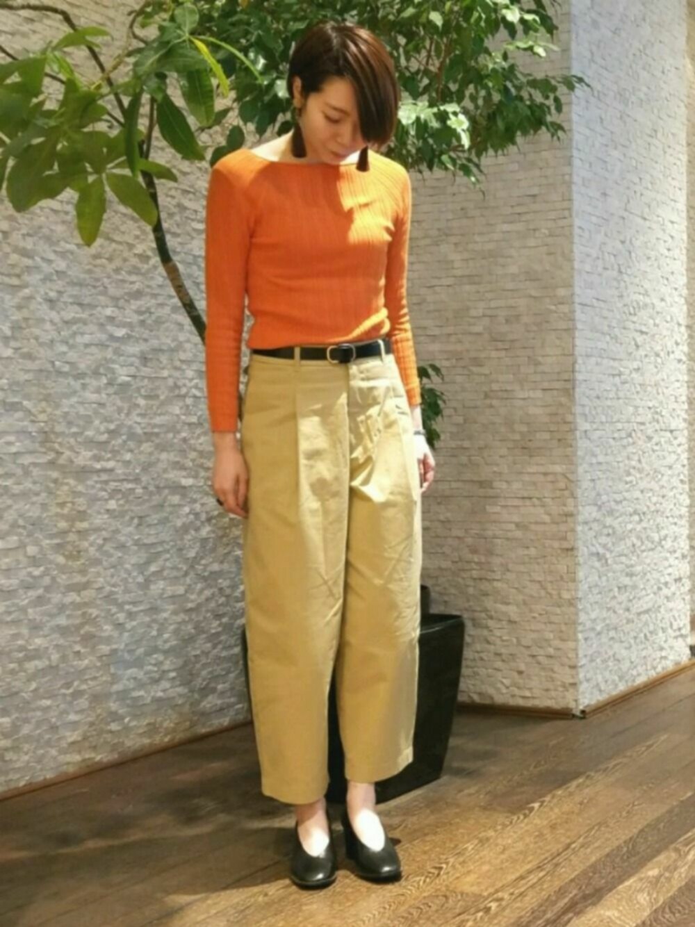リブニットにワイドパンツ 足の甲をキレイに見せてくれる Vカットパンプスはシンプルで コーデしやすい🎵 太ヒールで安定感抜群‼