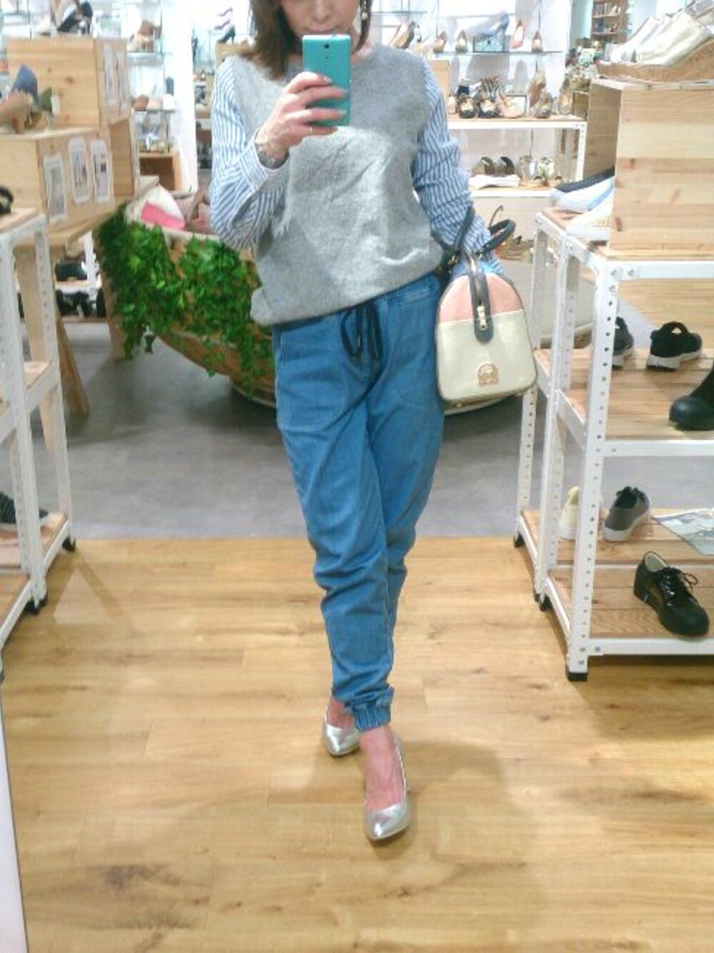 最近買ったユニクロのパンツ ゆるっとしてて履き心地よくて 癖になりそう 足元はエンチャンテッドの本革パンプス 今日はシルバーです