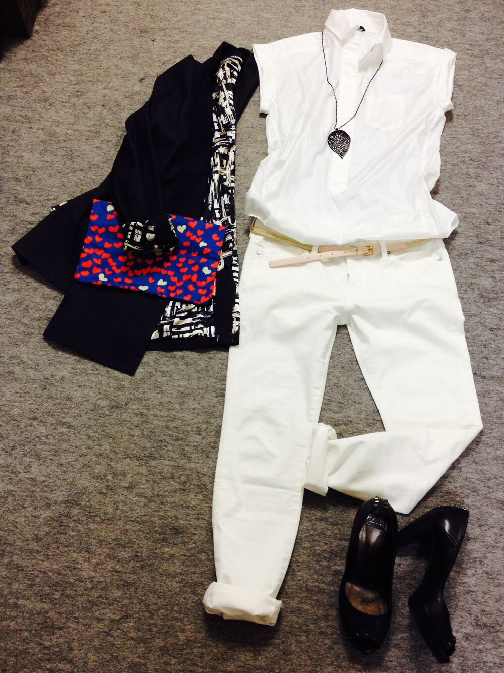 シャツ: SLY パンツ: GU ジャケット: ブランド不明 パンプス: MARE