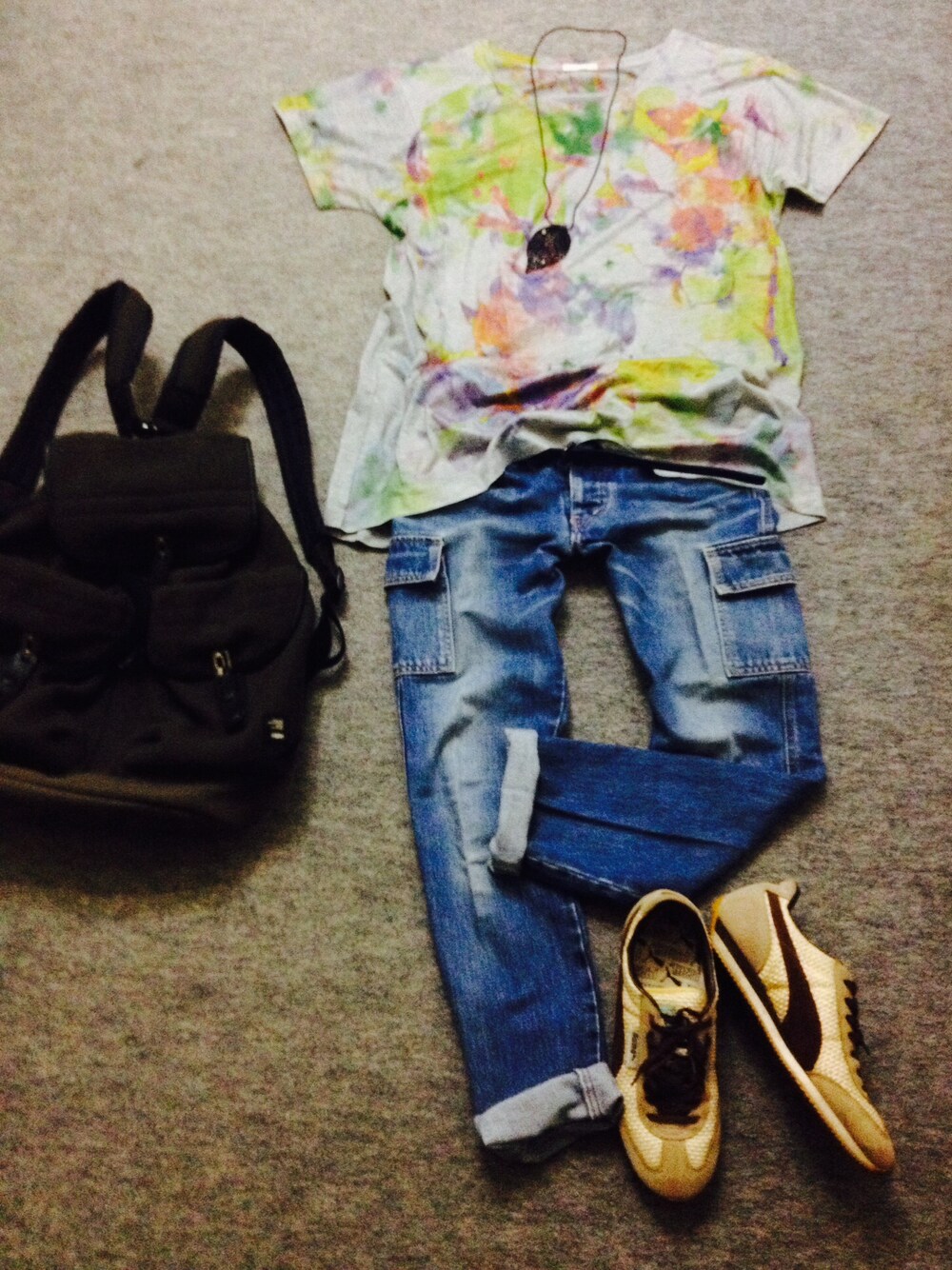 Tシャツ: GU ジーンズ: DMG リュック: HeM スニーカー: PUMA