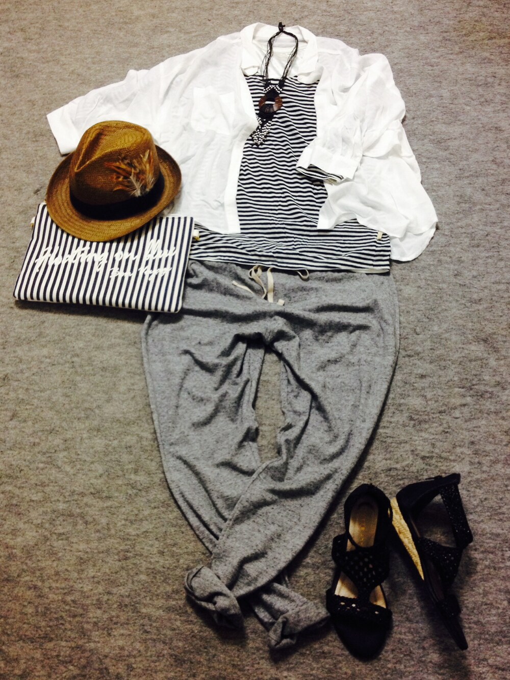 シャツ: GU インナー: JEANASIS スウェットパンツ: UNIQLO サンダル: JELLY BEANS