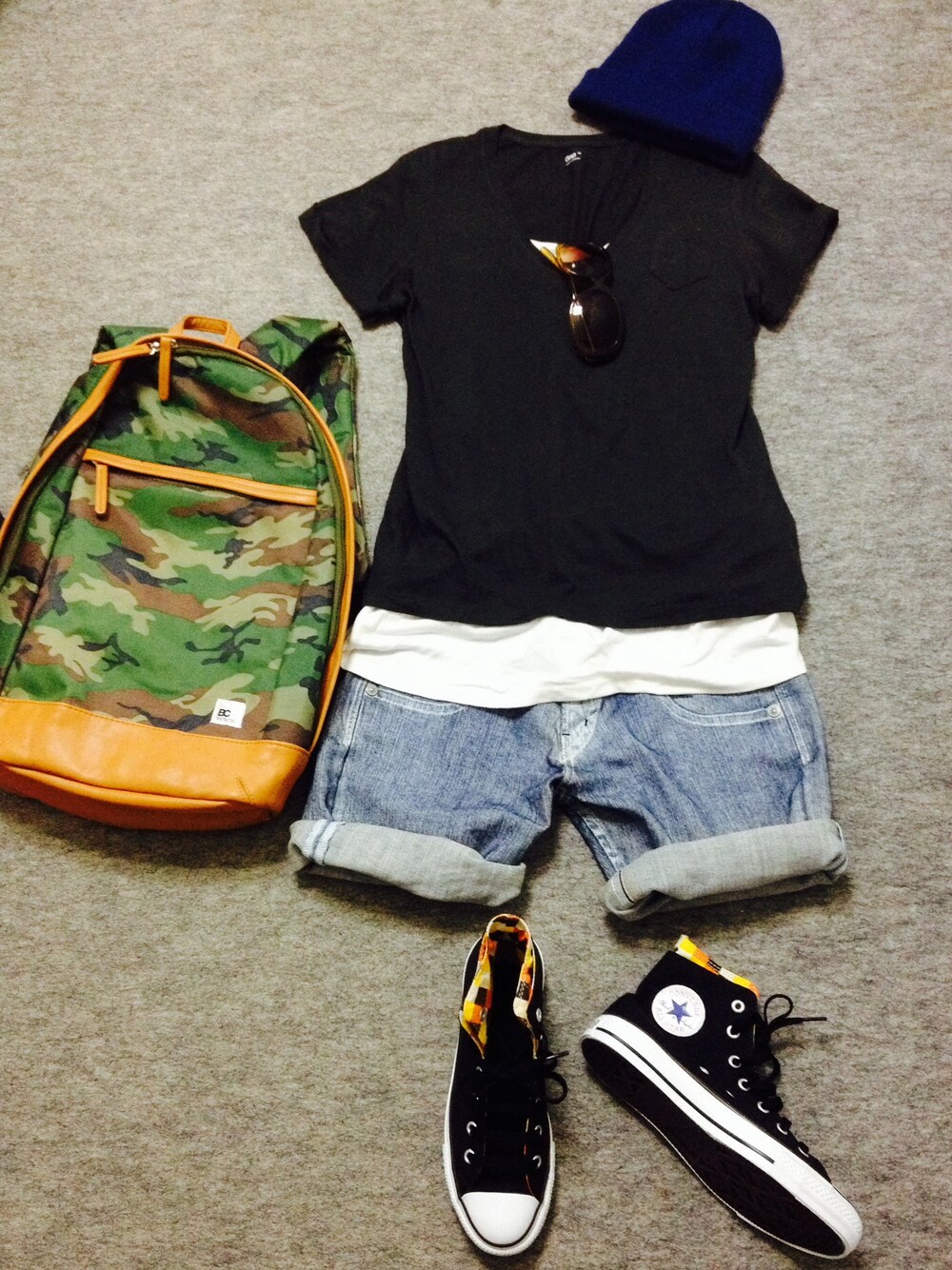Tシャツ: GAP 白Tシャツ: GU ジーンズ: SLY スニーカー: CONVERSE バッグ: BASECONTROL