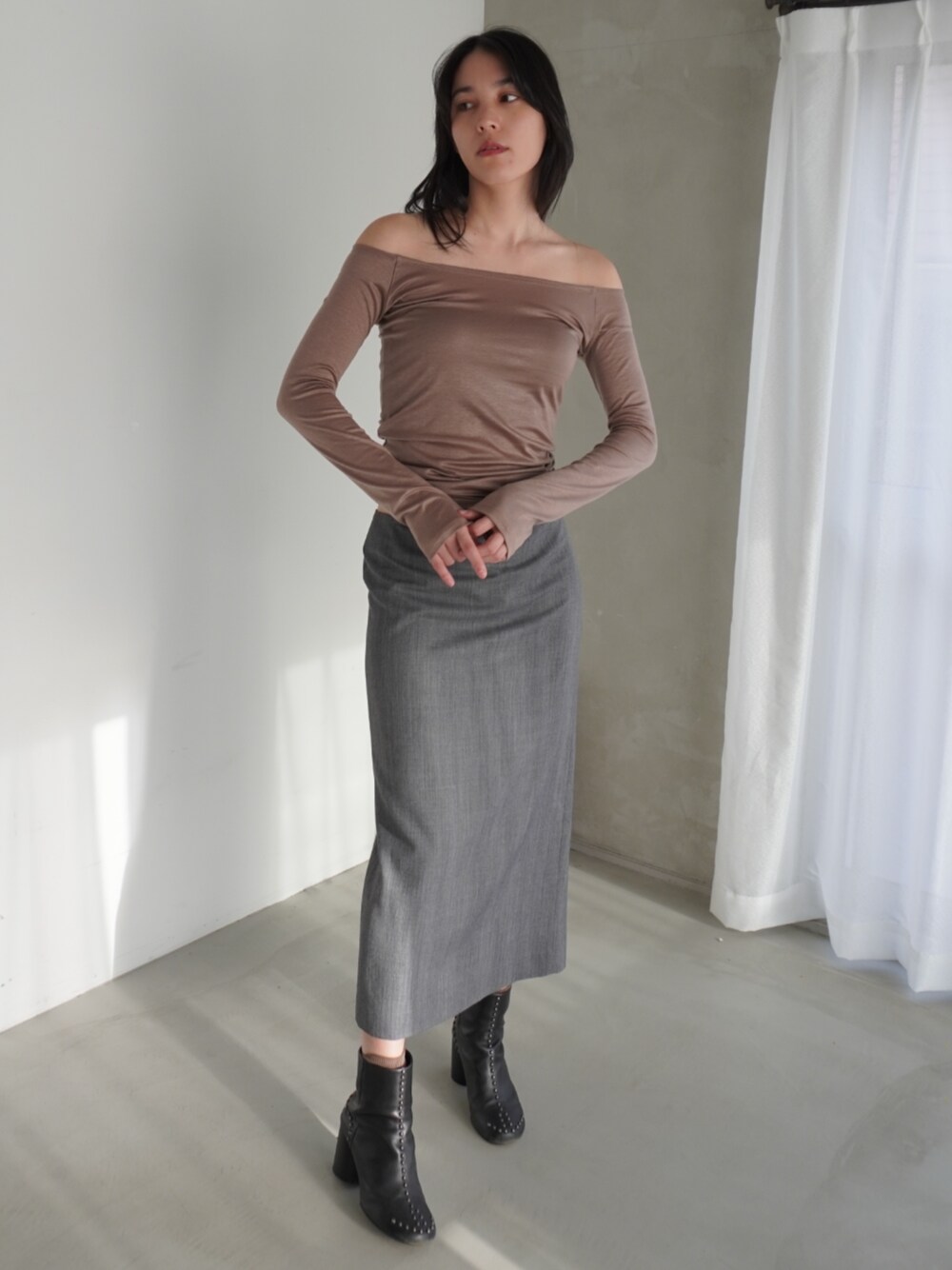 【2WAYで楽しめる】上品な肌見せができるオフショルダーデザインのトップス Alex 素材のハリ感と上品な光沢で、大胆にデコルテを見せてもいやらしくなりすぎず、女性らしいシルエットのカットソーです。 肩に乗せても、肩を落としてもと、どちらでも着用できるバランスとなっているので、様々なコーディネートで楽しめます✨ カラー:kinako サイズ:free Accent skirt ウエストにアクセントデザインの入ったタイトスカート。 たくさん着用してもシワになりにくく、お手入れしやすい部分も魅力、きちんと感もありどんなシーンでも使いやすいのがおすすめポイントです! カラー:clay サイズ:1 Instagram@encircletokyo