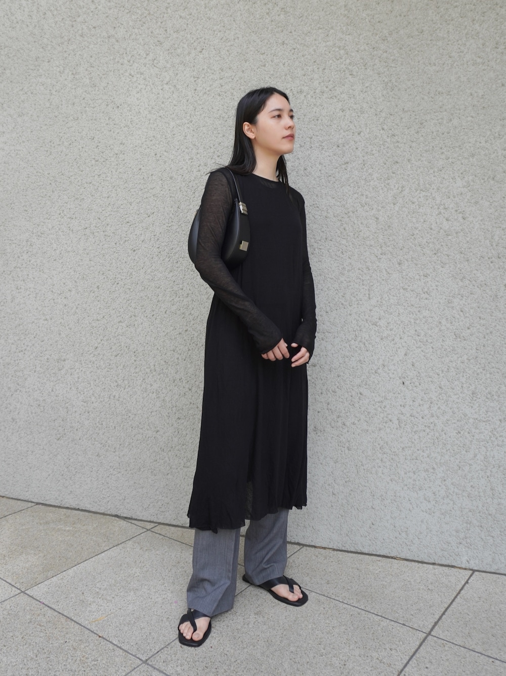 【Sheer dress】 天然繊維で軽量なdressはレイヤードしやすく、トレンド感も◎ カラー:ブラック サイズ:FREE 【Sheer top】 dressと同素材のtopsは1枚でもレイヤードしても着用していただけます。 カラー:ブラック サイズ:FREE 天然繊維ならではの軽さで、着心地の良いSheer dressと同素材のSheer topsをレイヤードさせたスタイリング。ブラックのレイヤードですが、透け感があるので重くなく決まります。 Instagram⇨@encircletokyo
