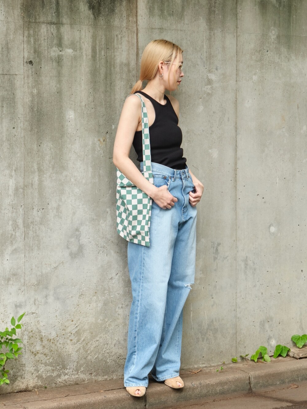 【Yin Yang tank top 】 カラー:ブラック サイズ:フリー 【comfy jeans】 カラー:ブルー サイズ:1 【Block check bag】 カラー:ライトグリーン サイズ:フリー ゆとりのあるデニムは、腰を落として履くと今年っぽく着れます。 夏に着たいヘルシーなスタイリングです。 Instagram⇨@encircletokyo