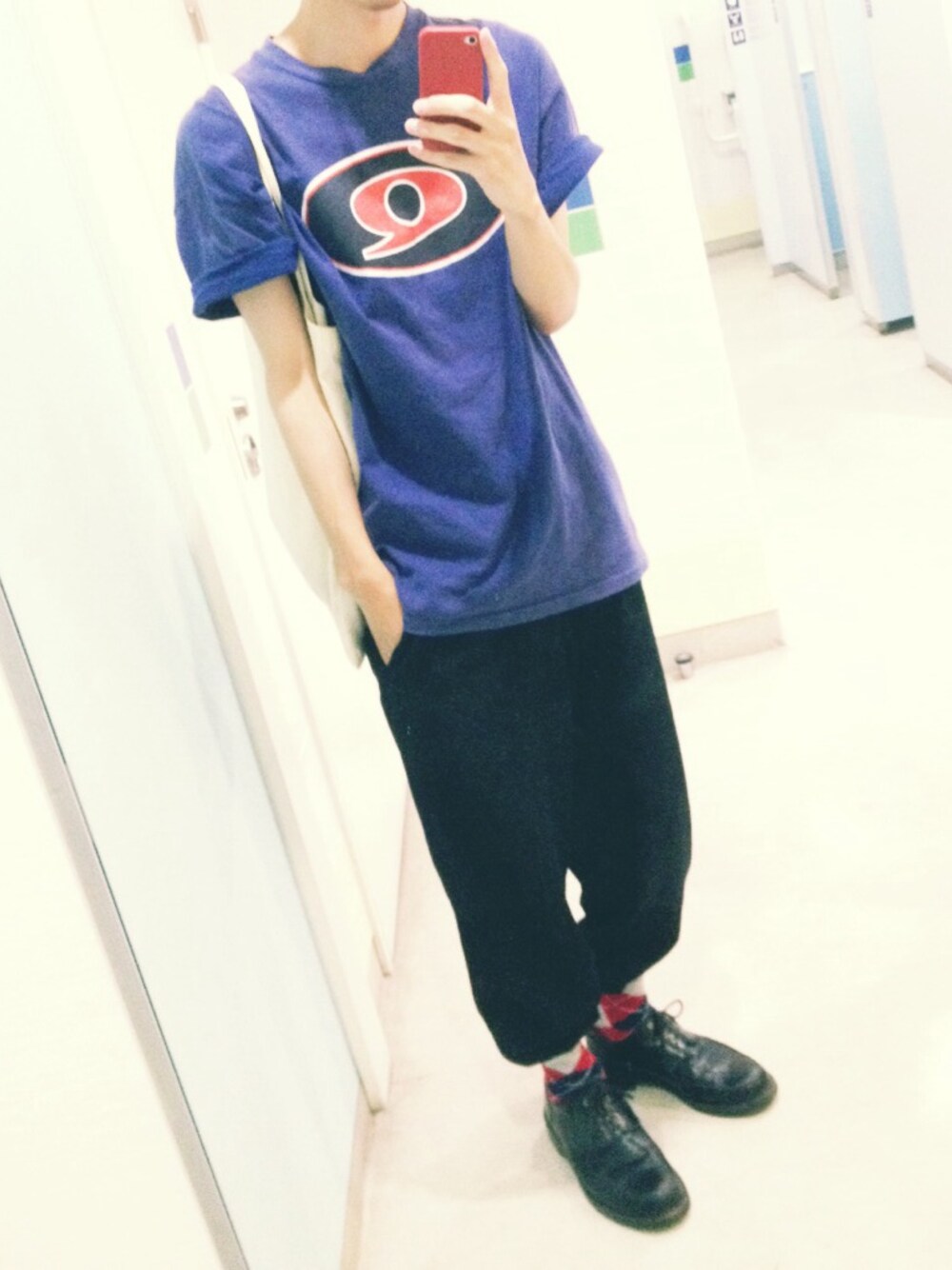 オーバーサイズT:used パンツ:ゴルチエ ソックス:UNIQLO レザーシューズ:REGAL トート:無印 最近、更新多いですね オーバーサイズのTシャツと ゴルチエのルーズなパンツを合わせて ゆるゆるの締まりがないコーデにしました スキニーでも良いのですが ゆるゆるが好きなのでこういうコーデに UNIQLOの赤いソックスに パンツの裾をINしてます これ流行るのかな ちょいちょい見かける気がします 自慢とか優位性を主張するわけではないですが 前からちょいちょいソックスに 裾を入れてたりしてました 理由はロールアップできない素材のパンツで なんとかソックスを見せたかったからです こんなんでいいのかなーとか思っていた矢先 それが許されるような具合になってきたので なんだかほっとしています ________________ 特に言うことはありませんが 特に食べなくとも平気になっている今 水分ばかり摂取している状態です でも全く苦ではないし調子も悪くない 食べ過ぎは身体に良くないといいます 食べなさ過ぎもまたそれに同じ 食べることそれ自体には責任が生まれるわけで 食べるのも食べないのも 食べ過ぎるのも全く食べないのも それら全てに自分が関わります 食べなくとも今は平気ですが 無理に食べることほど精神衛生上 僕は良くないこともないんじゃないかと そんなことを思うわけです 食べたい時に食べるのが ストレス溜まらんのじゃないのかな いえ、身体面(栄養という観点)からみたらそれは あまりよろしくもないのかもしれませんが 全く食べていないわけではないので ご心配なさらず そんな感じでさようなら