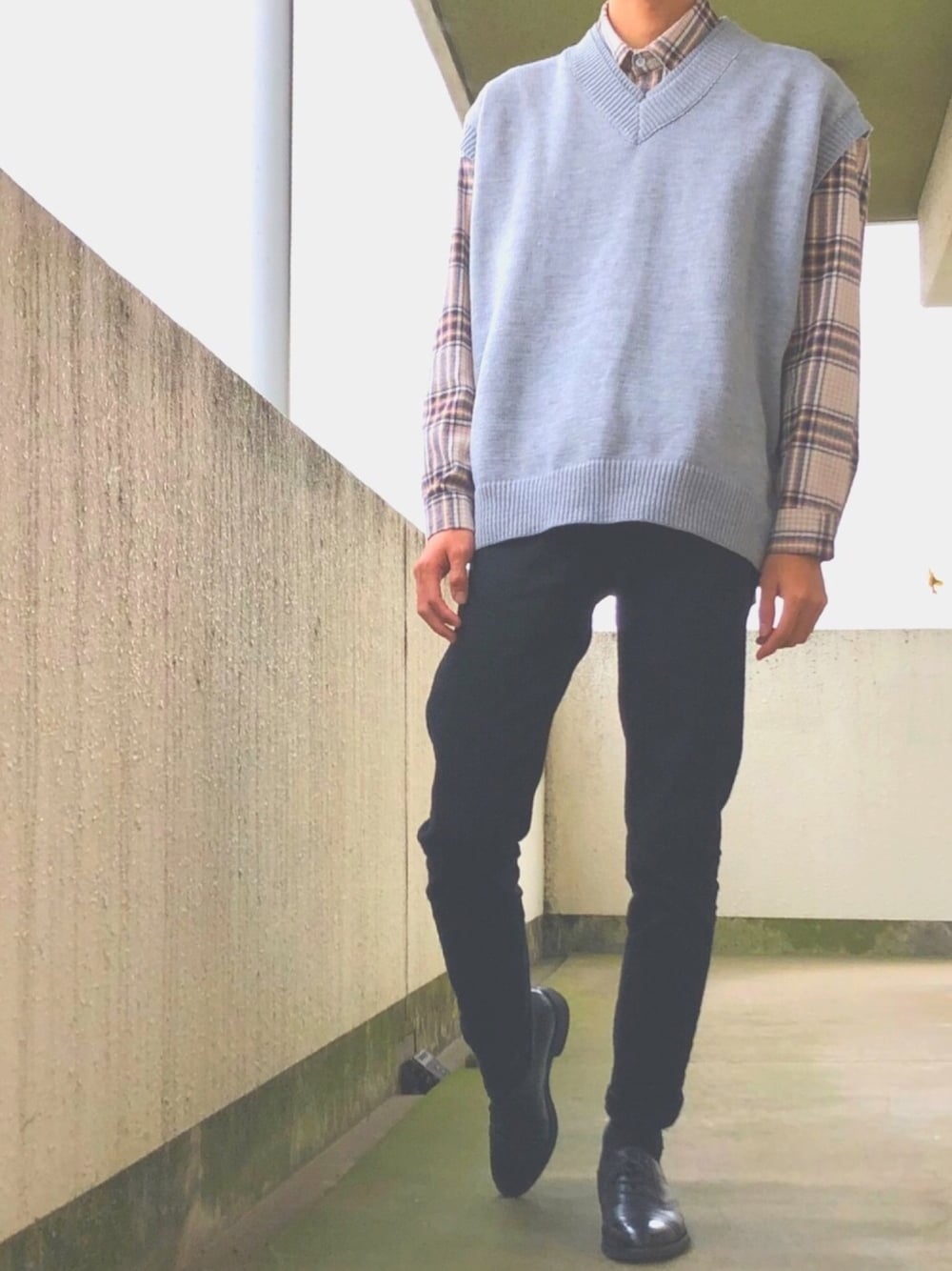 Endoのベスト「【neos -addictive design-】ビッグシルエット Vネック ニットベスト」を使ったコーディネート