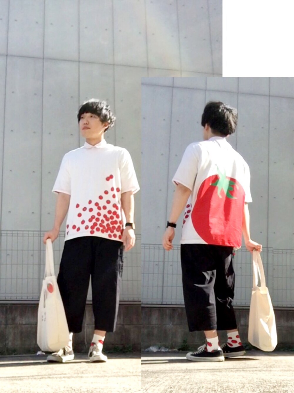 ご覧いただきありがとうございます!今日はトマト( ´ ▽ ` )ノproto(egg)product projectのTT展に行かせていただき購入しました!可愛い🎵 中にシャツを着てパンツは黒を、可愛いすぎないようにキレイめを意識しました👍