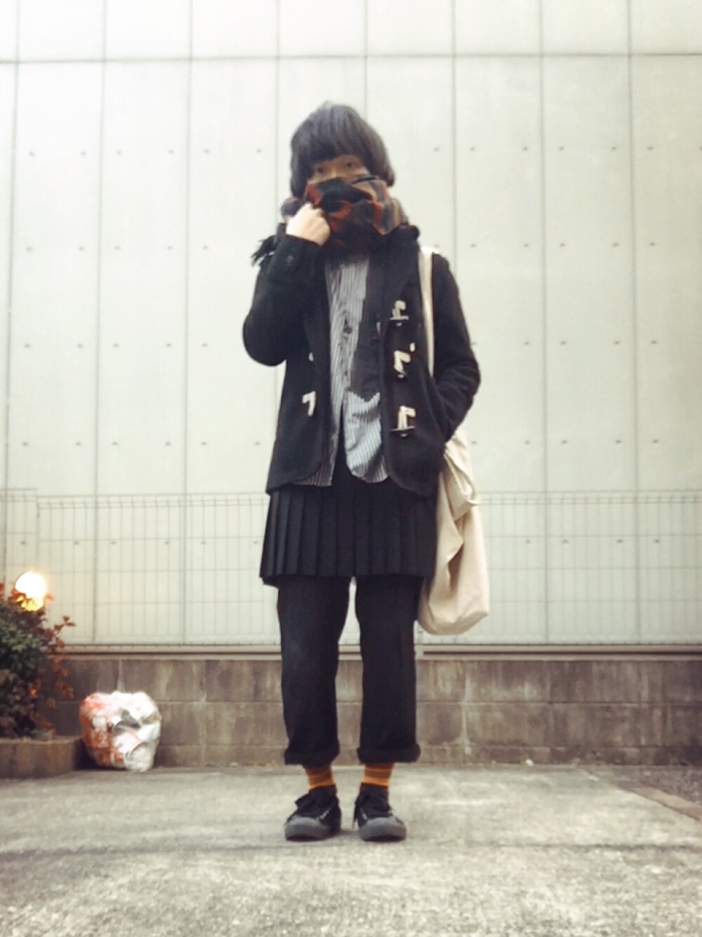 ご覧いただきありがとうございます🎵 久しぶりにギャルソンのブリーツスカートを履いてみました✌️ やっぱり良い❗️数年前のシーズンのですが今履いてもしっくりきます、幾つになっても履けるかな😄 シャツもギャルソンでアウターはダッフルで柔らかく🎵 あとはこのトートバック✨めちゃでかくて画家さんですか?とたまに言われます😊 というかなんか女子高生みたいになってるよーな笑💦