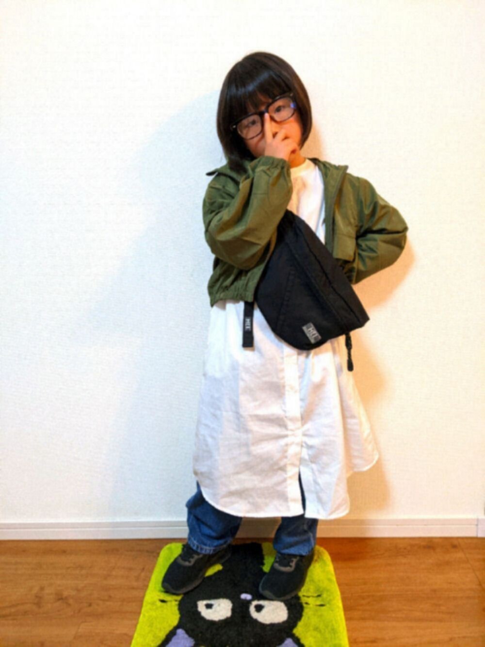 ご覧頂きありがとうございます😊 117cm 22kg デビロックのニットベストワンピースのワンピースだけ活用しました。 BREEZEのアウターは薄手なので長く活用出来そうです。キャンプにも使いたいです🥺 デニムはGUのハイウエストストレートジーンズ120cm着用しています。形が可愛い✨