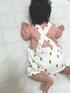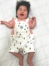 3ヶ月ベビー☆ お散歩コーデ☆ 可愛い!後ろ姿もバッククロスしていて可愛い! 両肩にスナップが付いていて首が座ってない赤ちゃんでも足から着せやすいし、被りもやりやすい👏 パイナップルヘアの娘にパイナップル柄の洋服を探すのにハマっています!🍍 今日も暑いので半袖ロンパースデビュー❤️