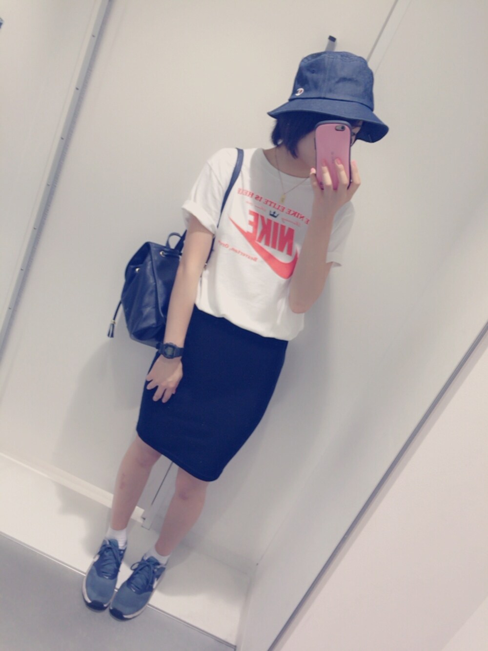 一人で新宿ぶらりしてきました〜(^ω^) ハット、スカートはアベイルで、靴下はしまむらめっちゃ安いです(笑) NIKEのTシャツは古着屋さんでげとりました☆彡