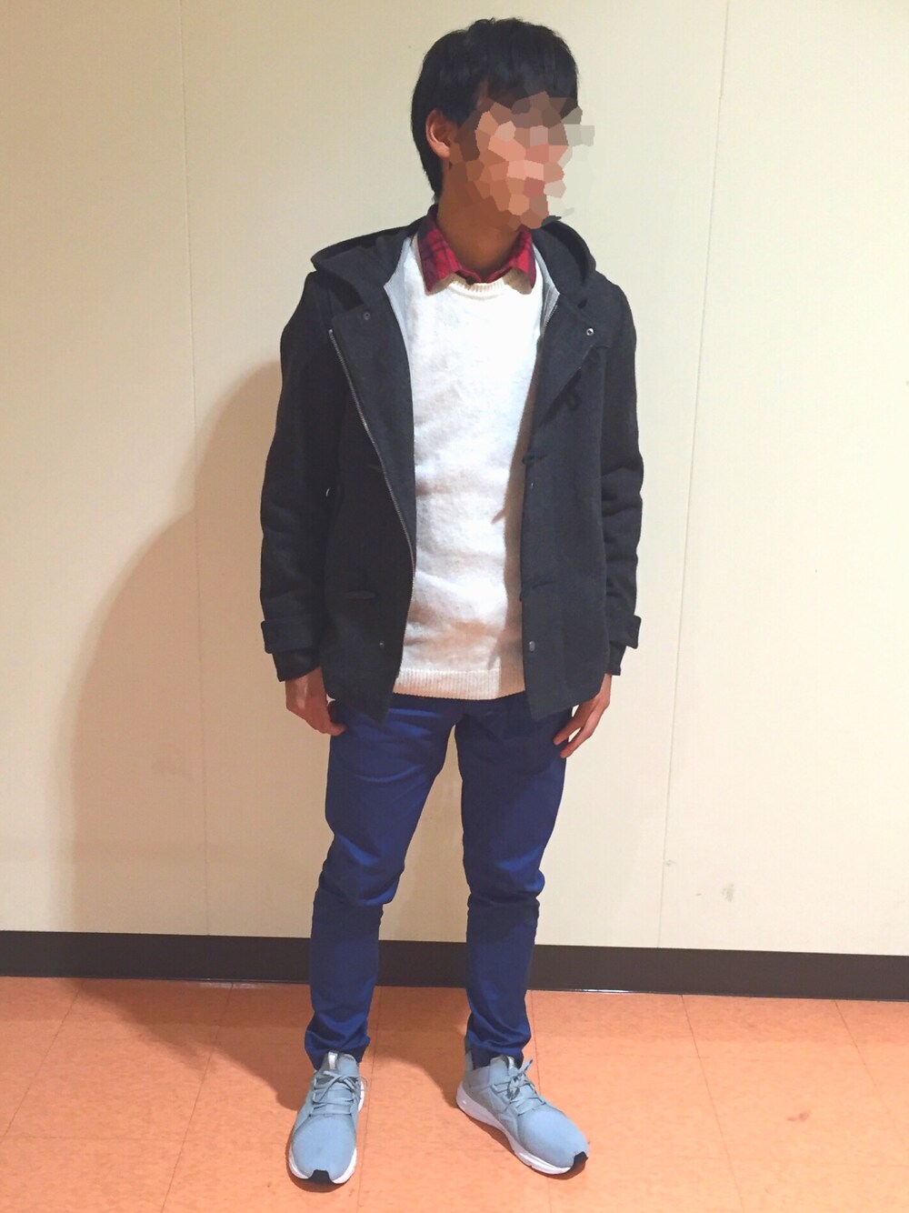UNIQLO赤チェックシャツとH&Mホワイト セーターの上にコートを組み合わせた コーディネートです。 シルエットは細身のまま暖かく過ごせます。 【サイズ】 シャツ•M セーター•M コート•L パンツ•S シューズ•28
