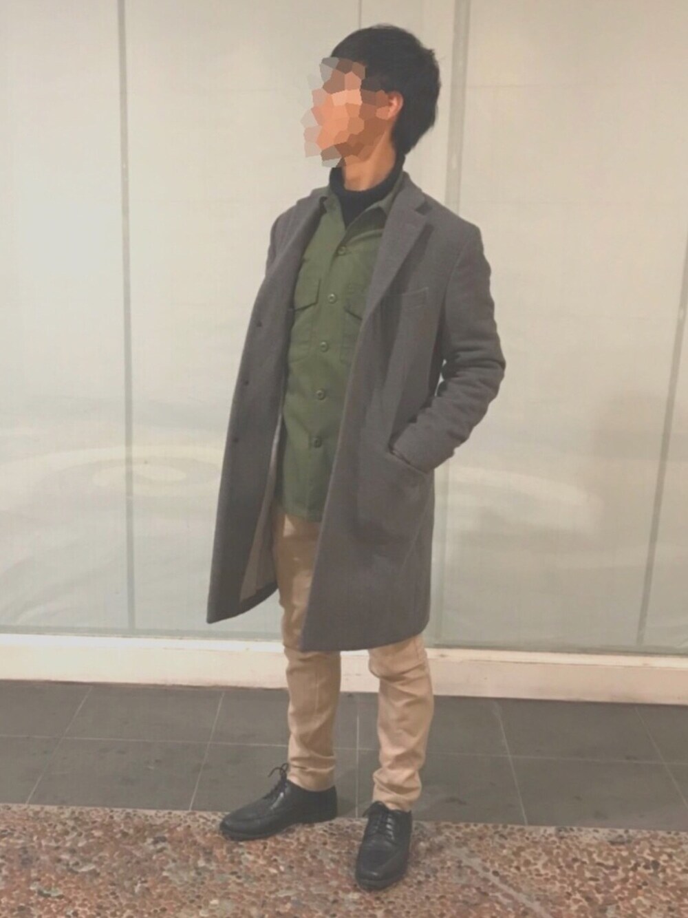 ミニタリーシャツ×タートルネック にチェスターコートを合わせてみました。 【サイズ】 コート•M ミニタリージャケット•M セーター•M パンツ•M シューズ•28