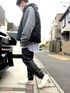 My first challenge to wear leather pants in my life. 全身グレー…息子に道路みたいって…笑 パーカーはyeezy season3の名作で。