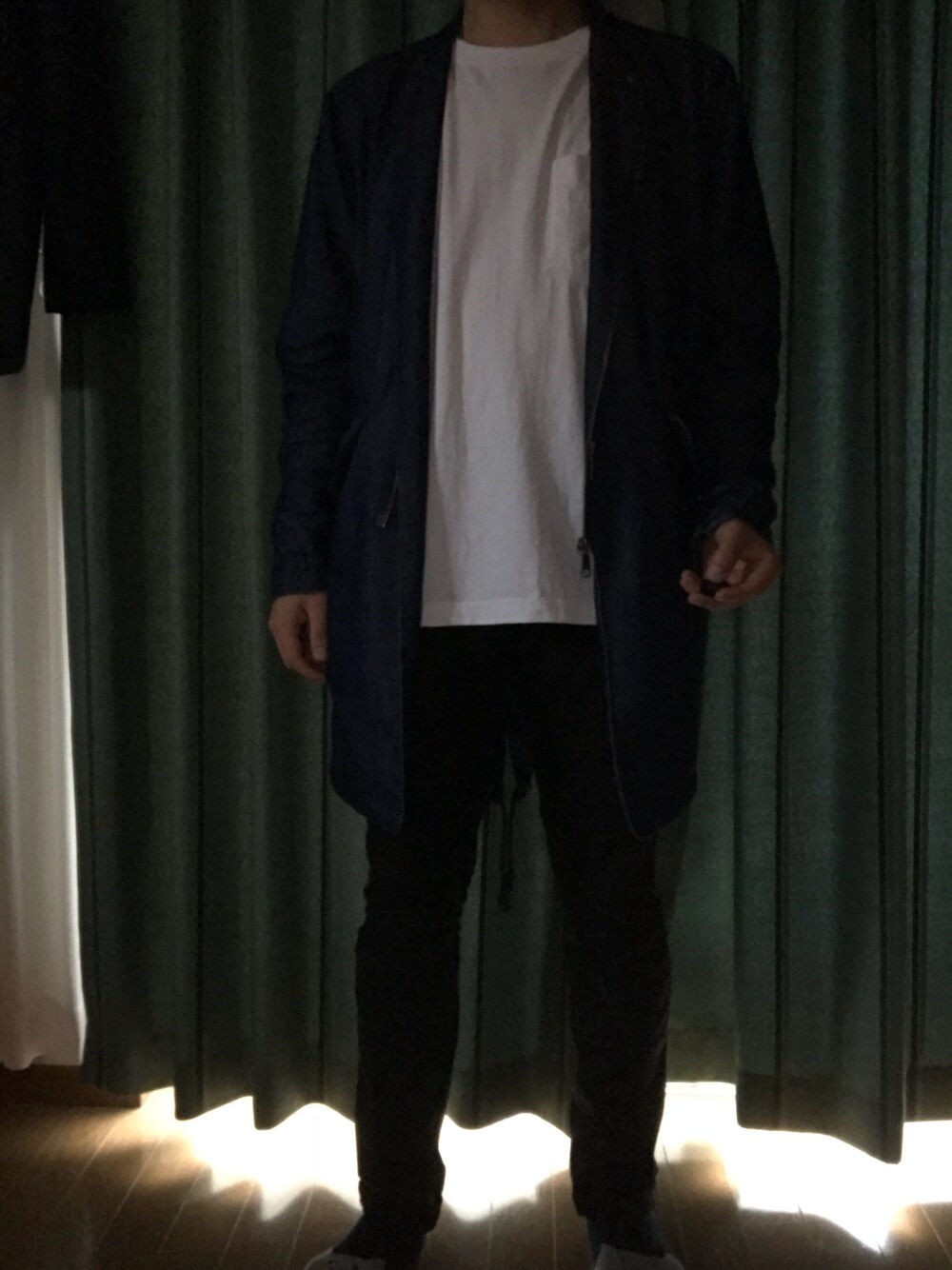 お久しぶりです 暗い中家で撮影したら思ったより暗かった… 分かりづらくてすみません 今日は久しぶりにシンプルコーデ、モノトーンコーデに+青のアウターという組み合わせです 本日は気温が低いのに湿度高かったのでシャツは半袖で調節しやすいようにアウターを着るという感じでしたね なんか梅雨に入ってきた感じありますが めげずに頑張りましょう それでは