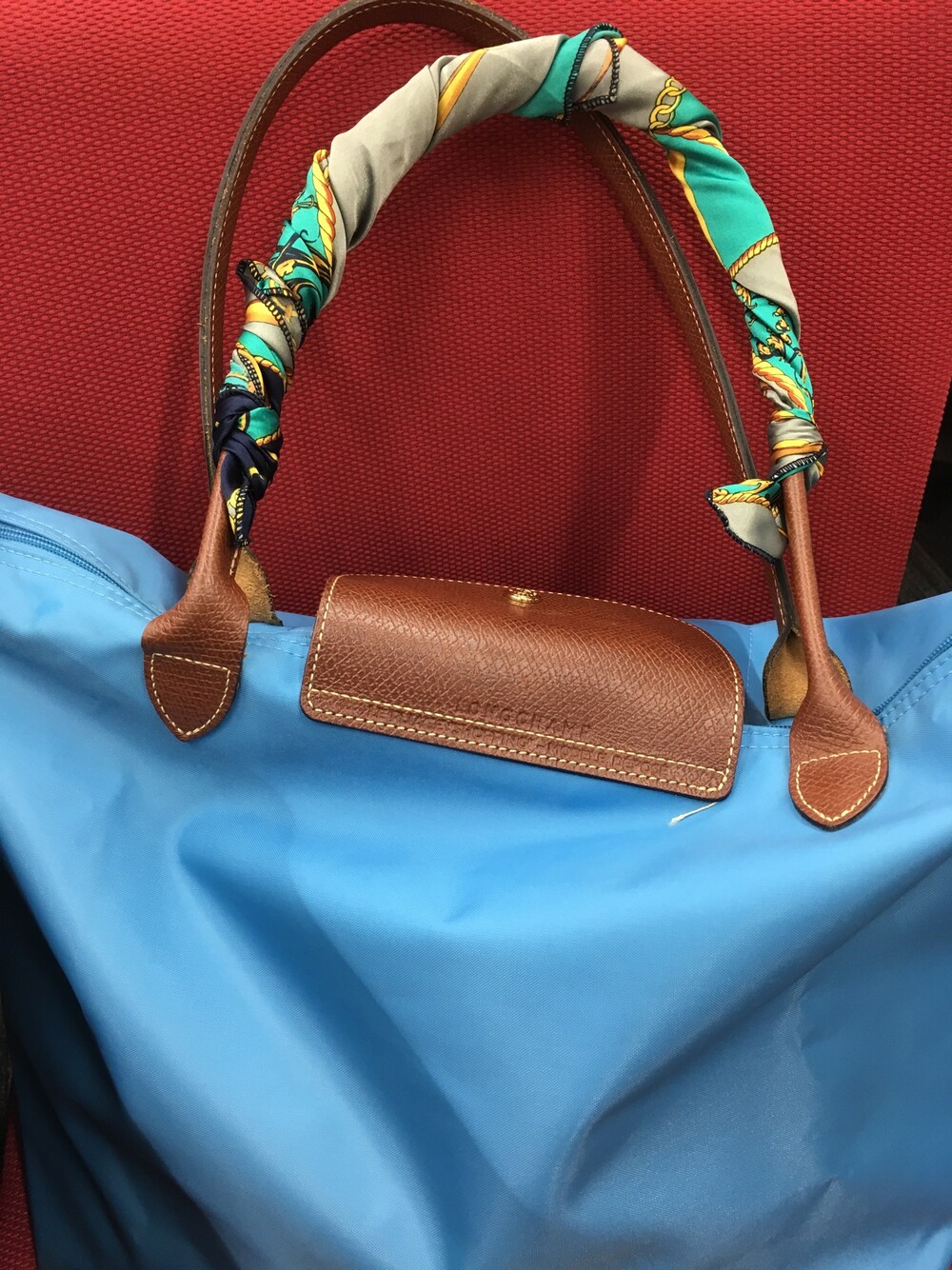 スカーフ巻き巻き。 持ってるとゆるくなってきて、なかなか巻き方難しいですね、、