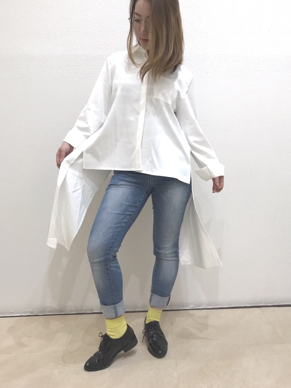 香港で買ったプチプラロングシャツにデニムを合わせて。
