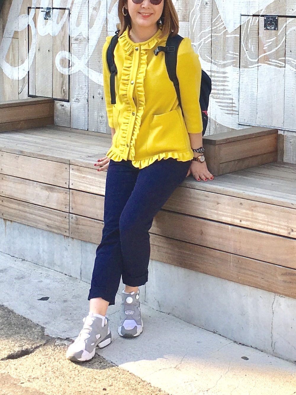 いい天気な日曜日、気持ち良い〜! 明るくて華やかなマルニのカーディガンで気分を上げてお出かけです!
