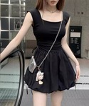 ENLIKEディレクターのMIYUです🌹 ワンピース1枚で着るのはちょっと物足りない時にはレイヤーがオススメ! レースのフリルパンツを合わせて抜け感をプラス 低身長の私はウエスト高めの位置にベルトをつけるのはマストです!