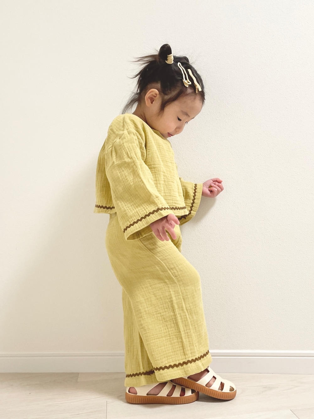 ダブルガーゼのセットアップ🐚 首元ゴム・ウエストゴムが楽ちんで、毎日着たくなる◎ お着替えも簡単なので、通園にももってこい! カラーによってイメージがガラッと変わるから、色違いで買いたくなるかわいさ❤︎ サイズはジャストサイズがオススメです! -------------------- ◆ご質問 ◆これ着て欲しい などご要望ございましたら、【Instagram】にてお気軽にご連絡ください 𓎤𓅮 --------------------