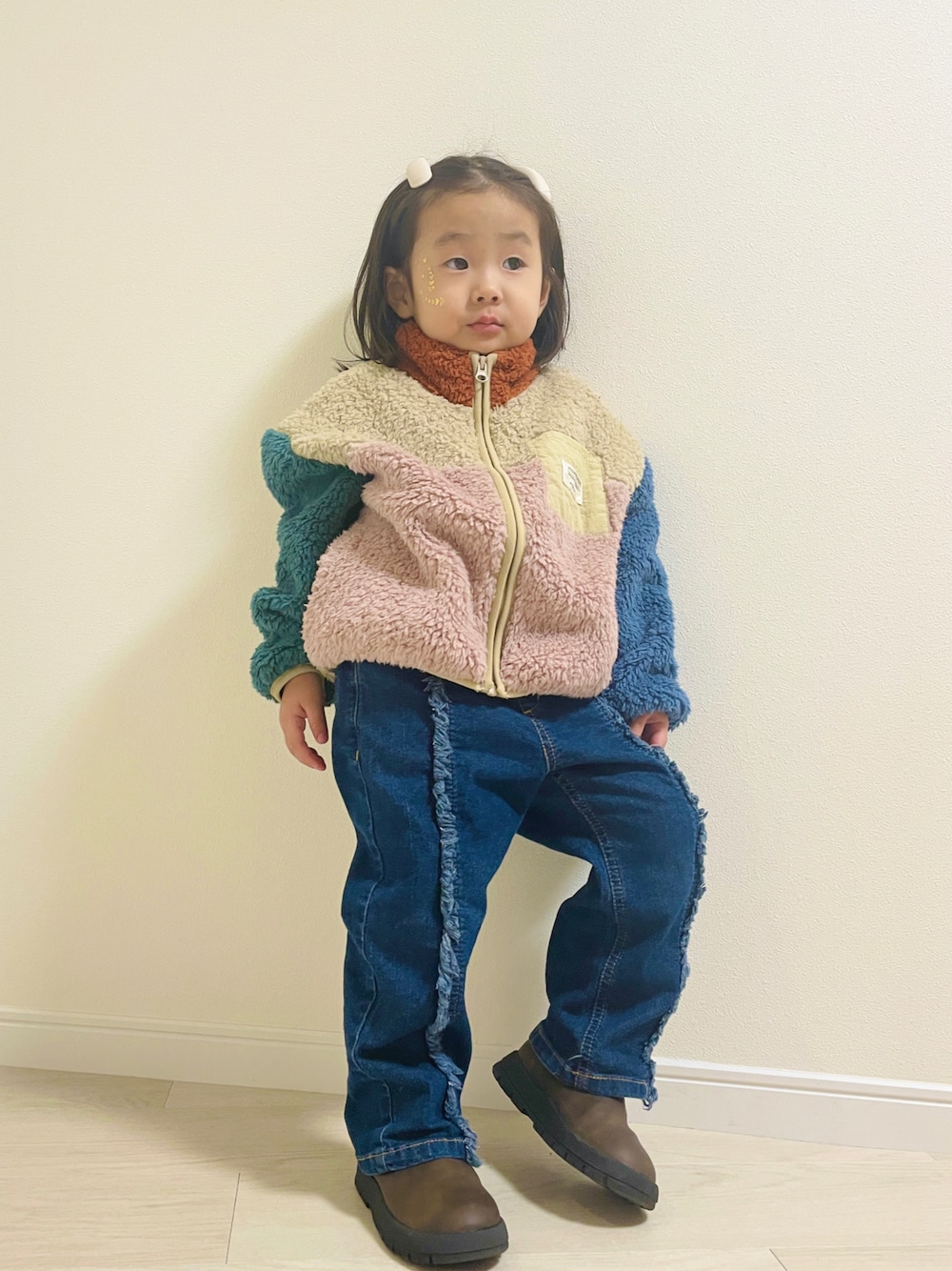 保育園の登園にとっても重宝しそうなアウター◎ 登園の際の自転車やバスは防風はしているものの、 暖かさが心配…な時に使える! カラフルは今までpairmanonのアウターではあまりなかった配色で、 男女問わず好きなお友達が多そうな予感…❤︎ 2サイズupの110cmで、 しっかり暖かく着られそうでした◎ (中に裏起毛を着ていても余裕なゆとり!)