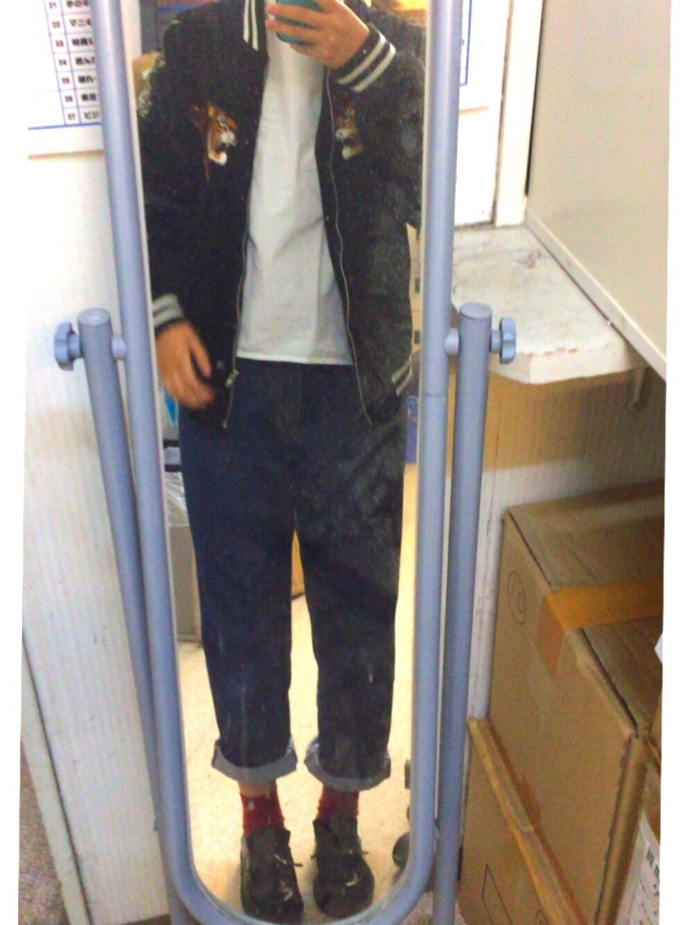父から譲り受けたガチめのスカジャン。 背中も腕にもしっかり刺繍が入ってます。 黒で着やすく中はオレンジで可愛さもあります。