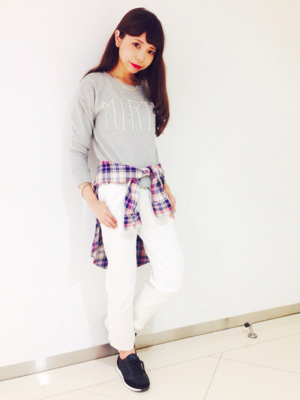 こんにちは☺︎ 今日は、定番のホワイトデニムに ロゴトップスを合わせて、 リラックススタイル〜 定番だけど、 シルエットや生地感、はき心地の良さは、 ロペピクニックならでは! やみつきになっちゃうかも♡ 腰にチェックシャツを合わせて 全体のバランスを整えてみました◎