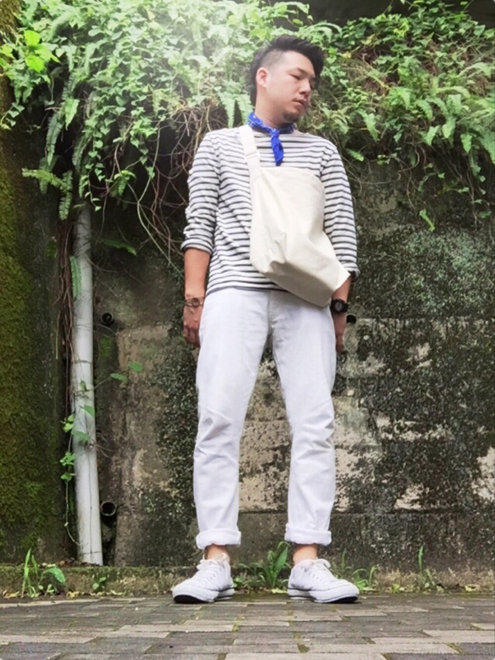 今日は作業がメインになるのに 白です。 Bshopで固めました(笑) バンダナは百均で調達しました…